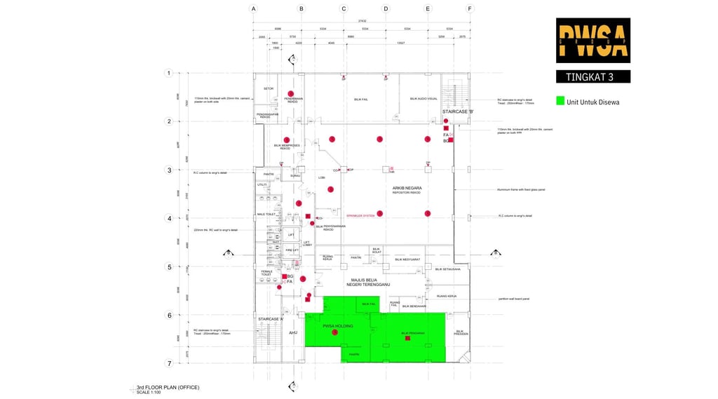 Ruang Pejabat Premium di Tingkat 3 Wisma Seri Amar Untuk Disewa