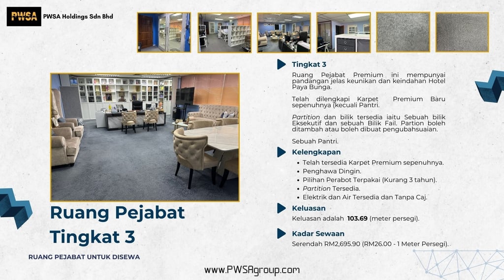 Ruang Pejabat di Tingkat 6 Wisma Seri Amar Untuk Disewa.