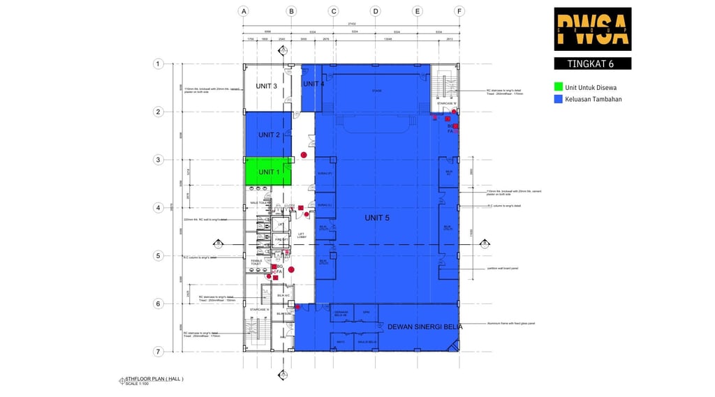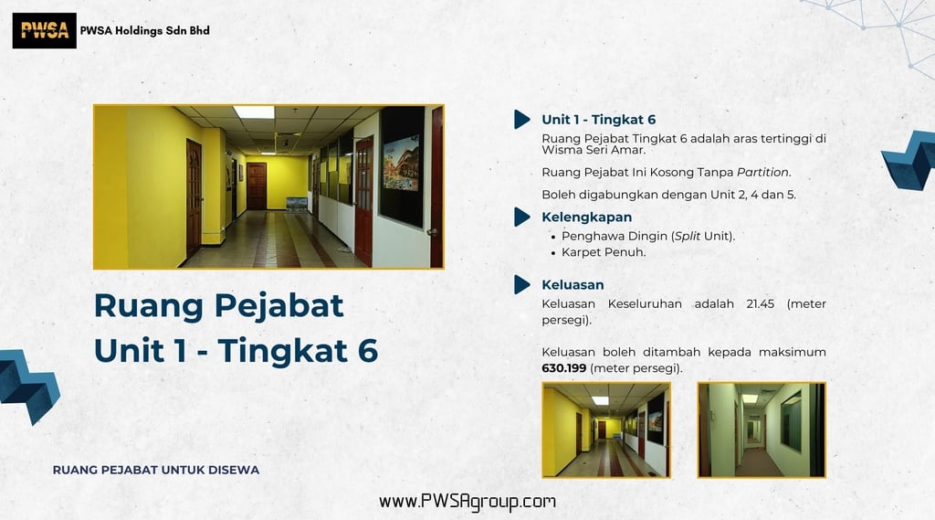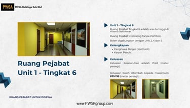 Ruang Pejabat Unit 1 di Tingkat 6 Wisma Seri Amar Untuk Disewa