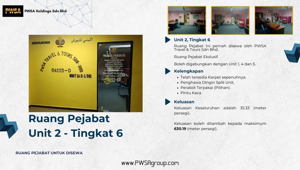 Ruang Pejabat Unit 2 di Tingkat 6 Wisma Seri Amar Untuk Disewa
