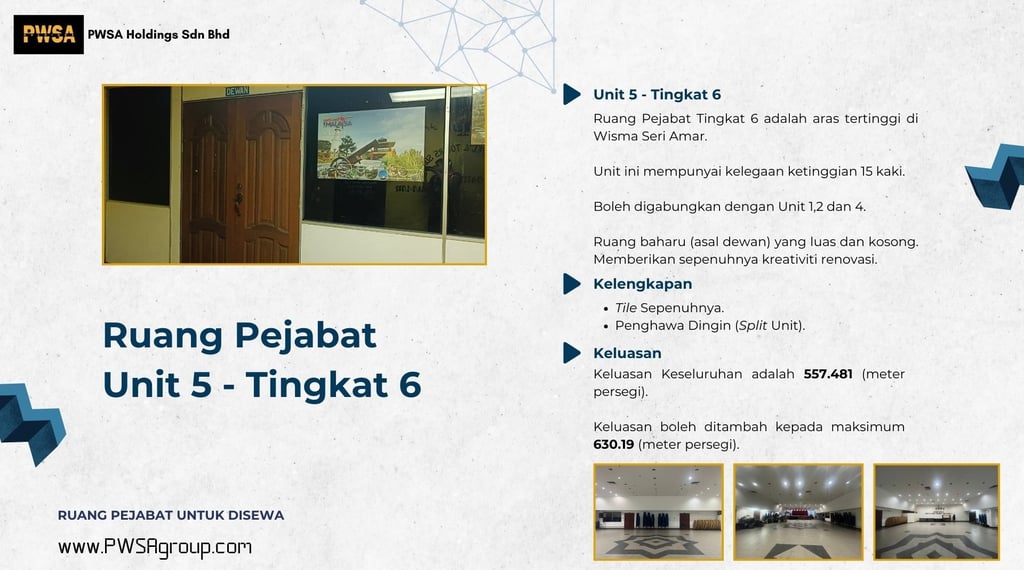 Ruang Pejabat Unit 5 di Tingkat 6 Wisma Seri Amar Untuk Disewa